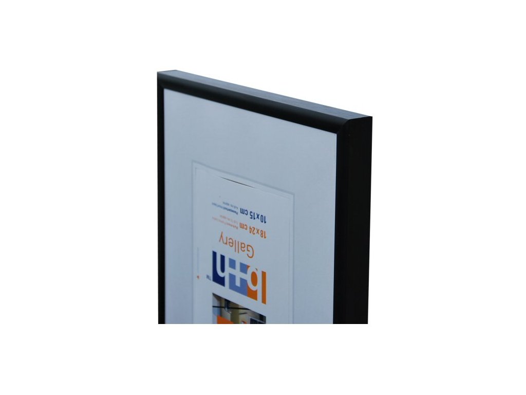 Kvalitní hliníkový rám je vhodným doplňkem do moderních interierů nebo kanceláří. Často je využíván pro výstavy, galerie, rámování certifikátů či diplomů ale stejně tak je vhodný pro obrazy i fotografie. Je pevný a odolný proti mechanickému poškození. Rám se skládá ze zadní desky (HDF 2,5mm), hliníkové lišty, zasklení, papírového tisku a kovových montážních prvků. Lze jej zavěsit na zeď vodorovně či svisle. Formáty do rozměru 18x24 včetně mají zadní stěnu vybavenu opěrnou nohou k umístění na stůl.